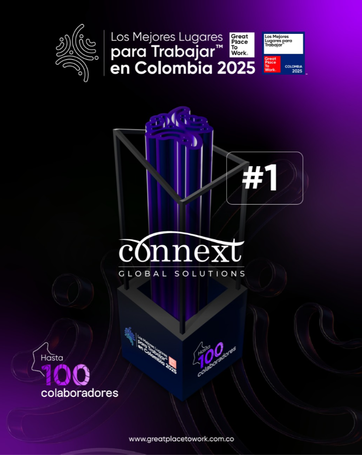 Bogotá, Colombia – November 2025 – Connext is proud to announce that it has been named the #1 Best Place To Work™ in Colombia for 2025 in the Great Place To Work™ category of organizations with up to 100 collaborators.