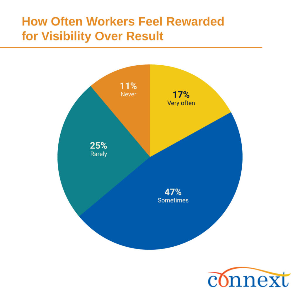 - Visibility Trumps Results: 64% report being rewarded for visibility at least sometimes, opposed to effectively delivering results for the company.