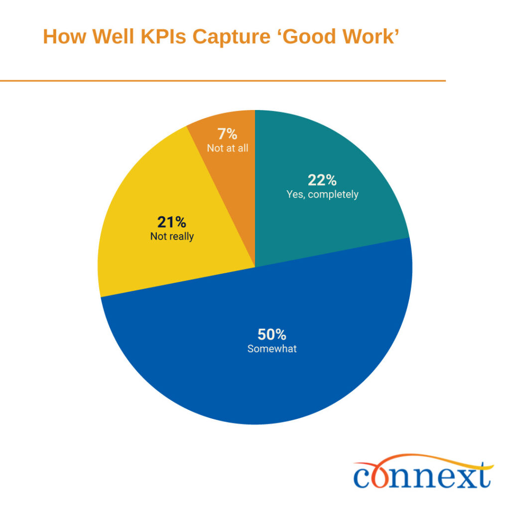 - Outcome Clarity is Scarce: Only 23% say their performance is measured by clear, outcome-tied metrics, while just 22% feel KPIs completely reflect good work.