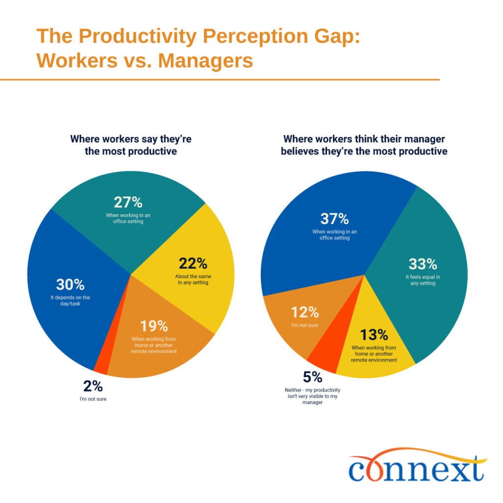 - Office Bias Persists: Just 27% say they’re the most productive in-office, yet 37% think their manager believes the office is best.