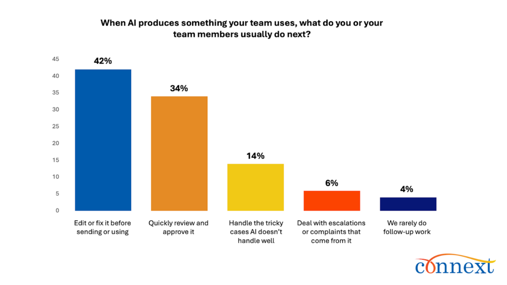A new Connext Global survey suggests the reality is more complicated. AI may speed up first drafts, but reliability still depends on humans who review, correct and take responsibility when output misses context, introduces errors or creates downstream impact.